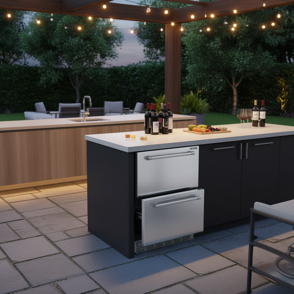 Frigorifero Sottobanco da 24 Pollici, 4,87 Piedi Cubi Frigo Portatile a Doppia Zona con Cassetti, Impermeabile, per Interni ed Esterni