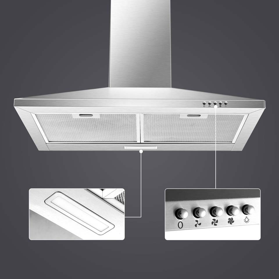 24-Inch Convertible Stove Vent Hood Stainless Steel Ducted/Ductless 450 CFM Range Hood with Wall Mount Alumi Style