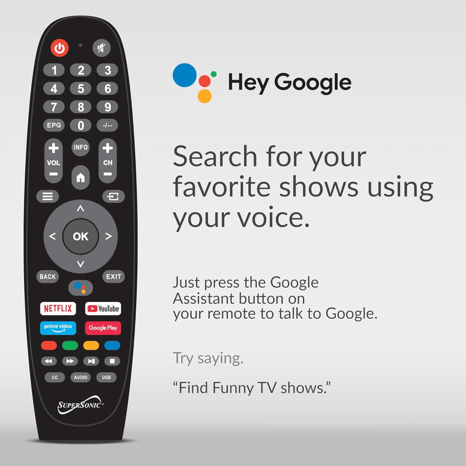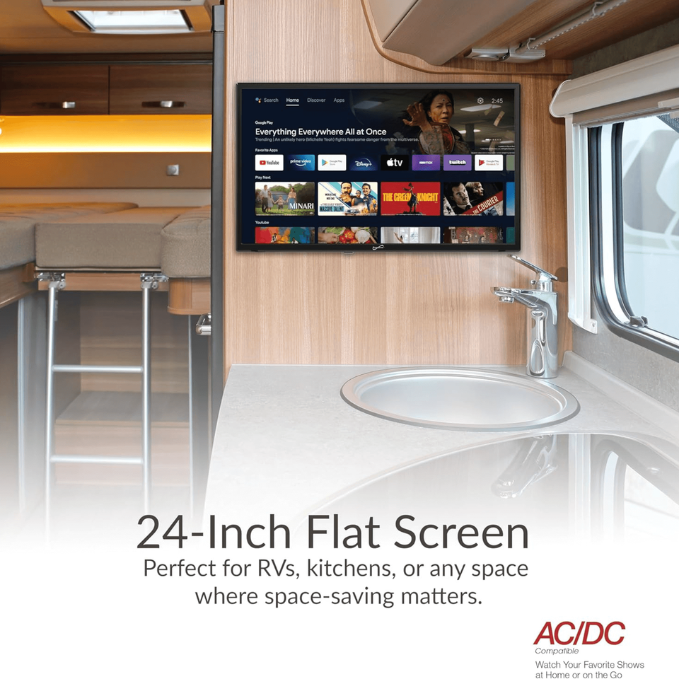Smart TV DLED da 24 Pollici con Assistente Google, Compatibile con Sistemi ACDC, ATSC e NTSC, Set-Top Box