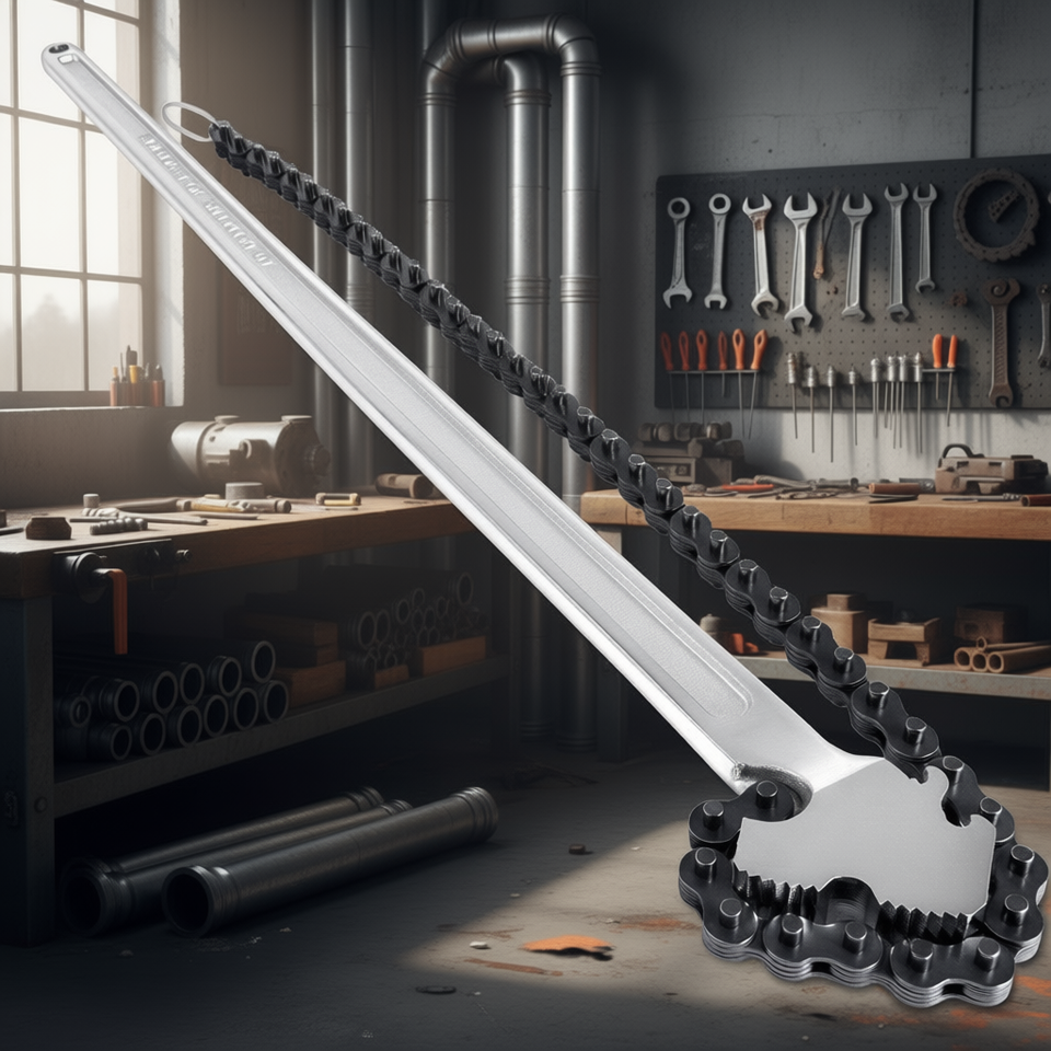 Carbon Steel Chain Pipe Wrench Metric 24-Inch 6.7-Inch Diameter Capacity Adjustable Jaw Industrial Grade Manual Operation