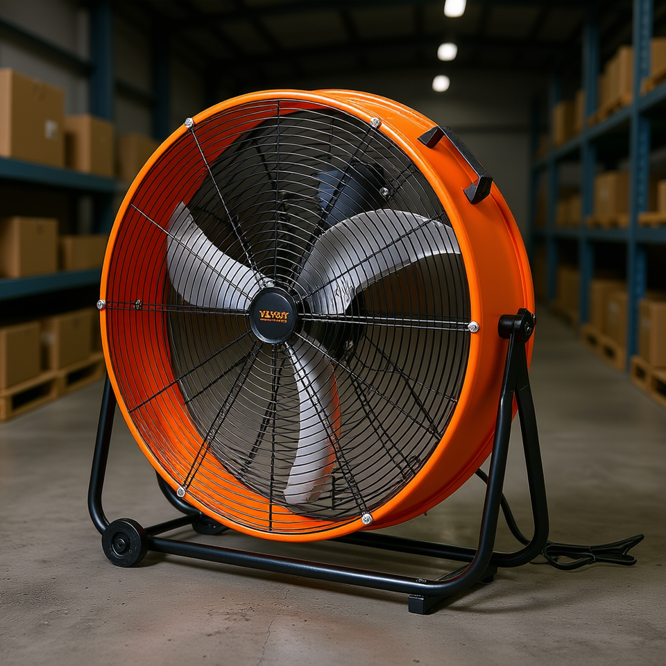 24 Inch Industrial Drum Fan 3 Speed Orange Aluminum Blade Warehouse Use
