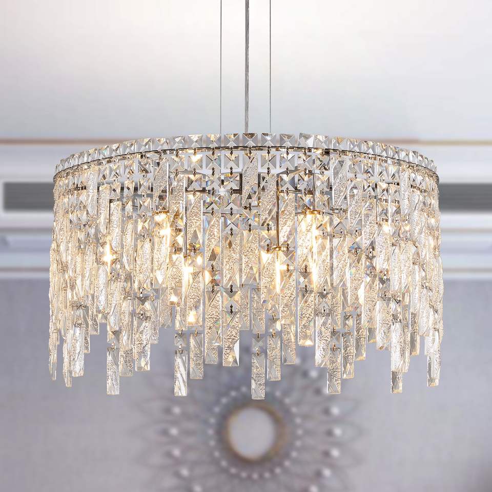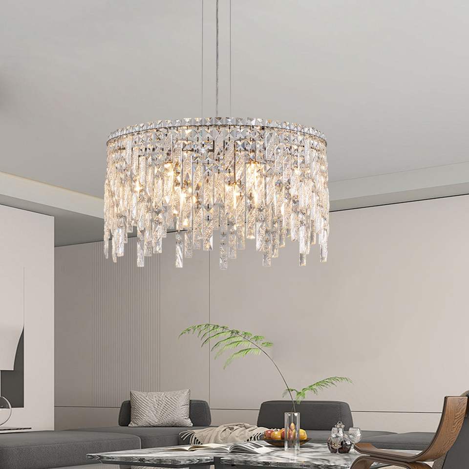 Lampadario di Lusso in Cristallo Argento da 24 Pollici, Lampada a Sospensione Rettangolare Contemporanea per Sala da Pranzo e Soggiorno