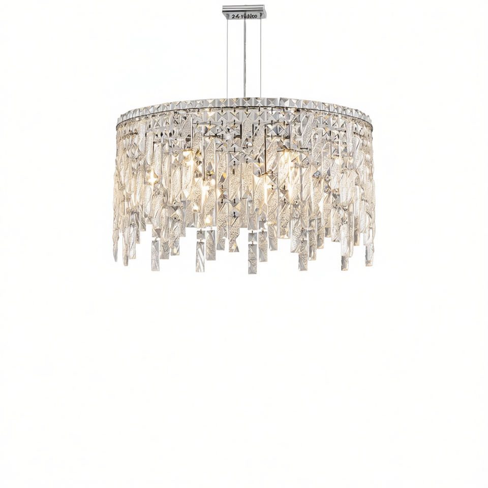 Lampadario rettangolare in cristallo argentato da 24 pollici con corpo in ferro cromato per illuminazione interna del sala da pranzo