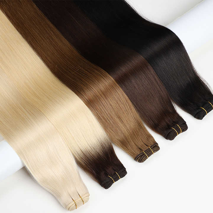Extensioni per capelli a doppia trama da 24 pollici, 100% Remy, con trama annodata a mano, lisce, Genius Weft