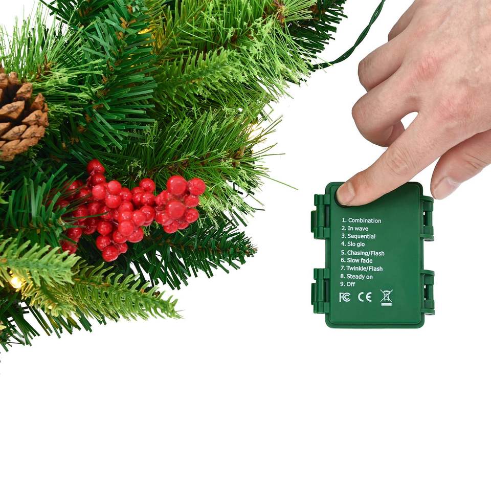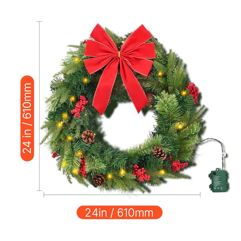Ghirlanda Natalizia Artificiale Pre-Illuminata da 24 Pollici con 50 Luci LED, Pigne e Perline Rosse, Ghirlande e Corone Natalizie con Timer