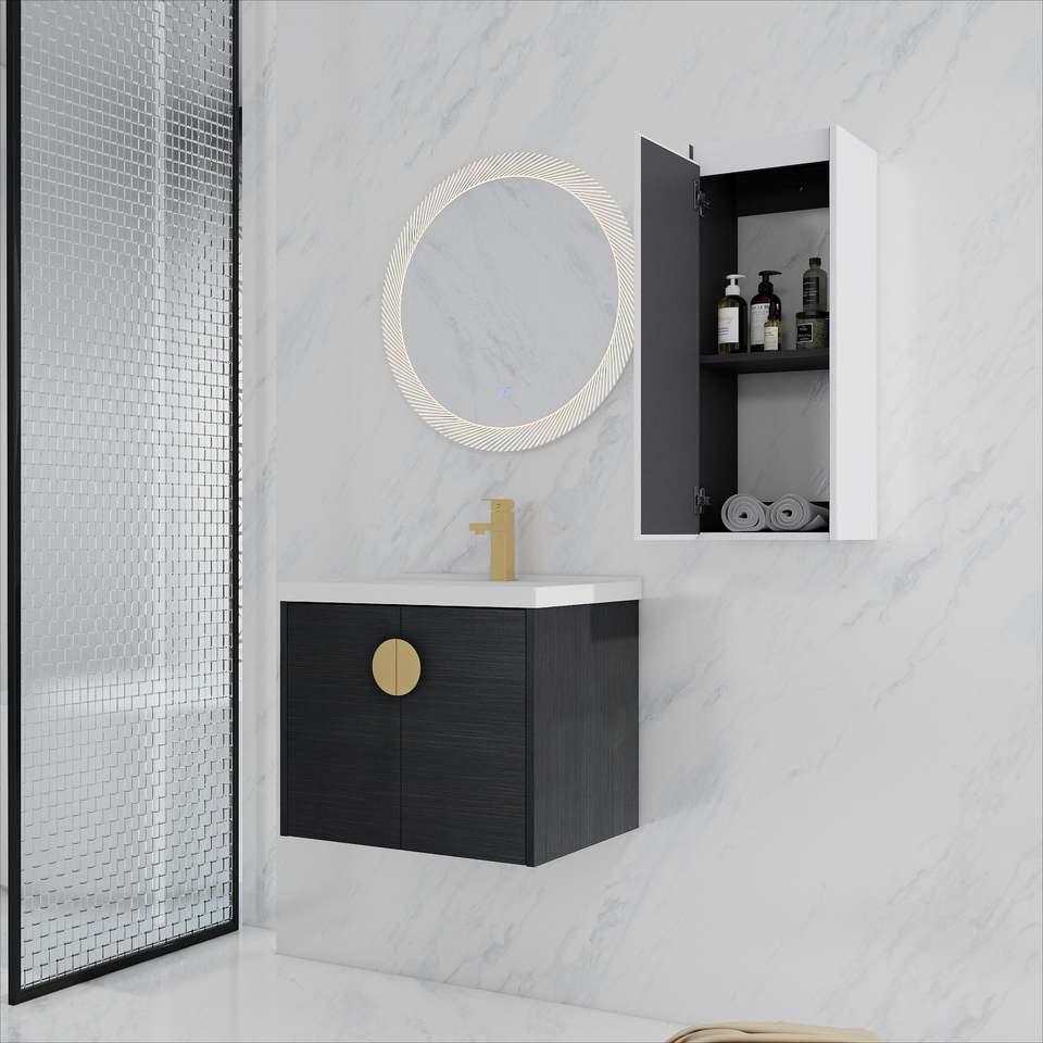 Mobile Bagno Sospeso da 24 Pollici con Lavabo in Ceramica e Ante a Chiusura Ammortizzata 00112WH 06324BCT Combinazione Armadietto (KD)