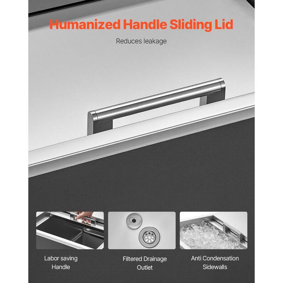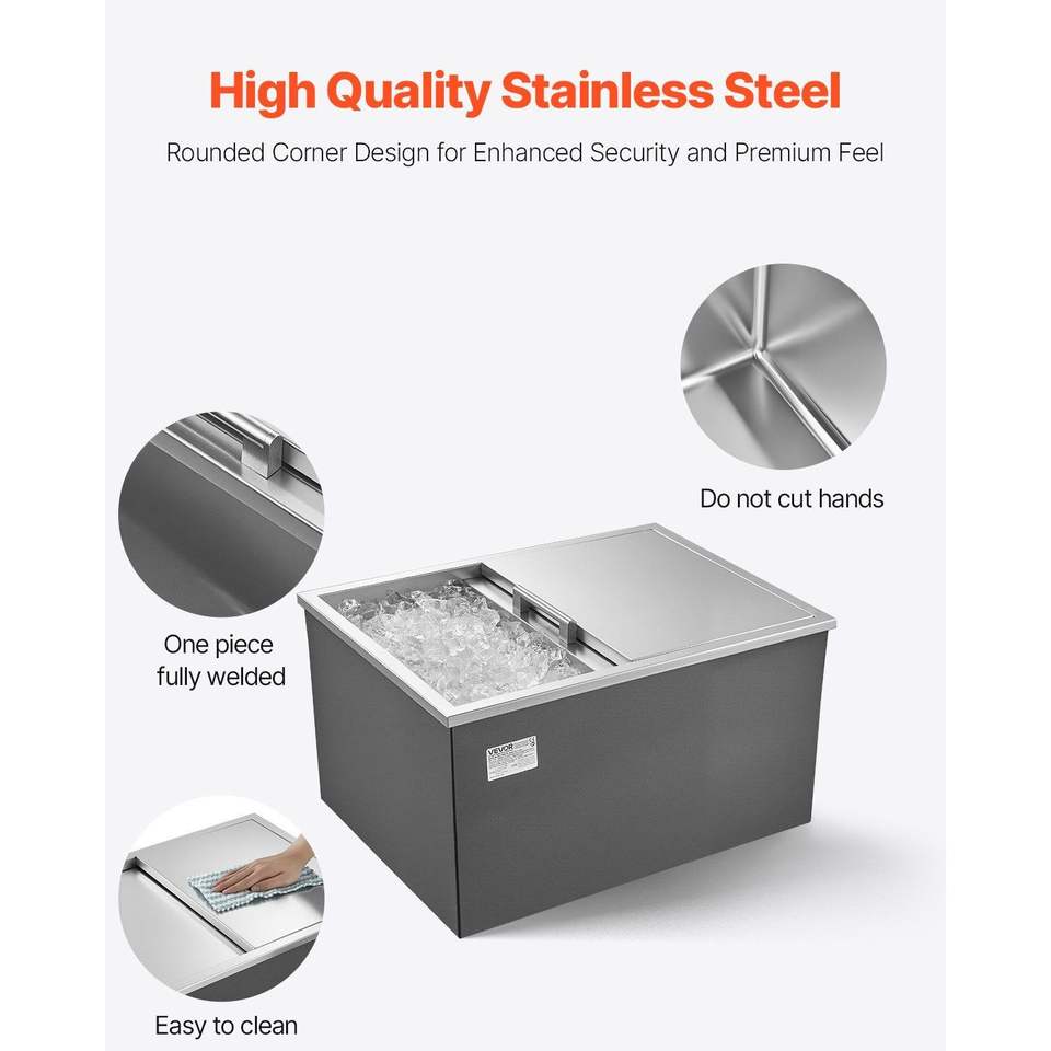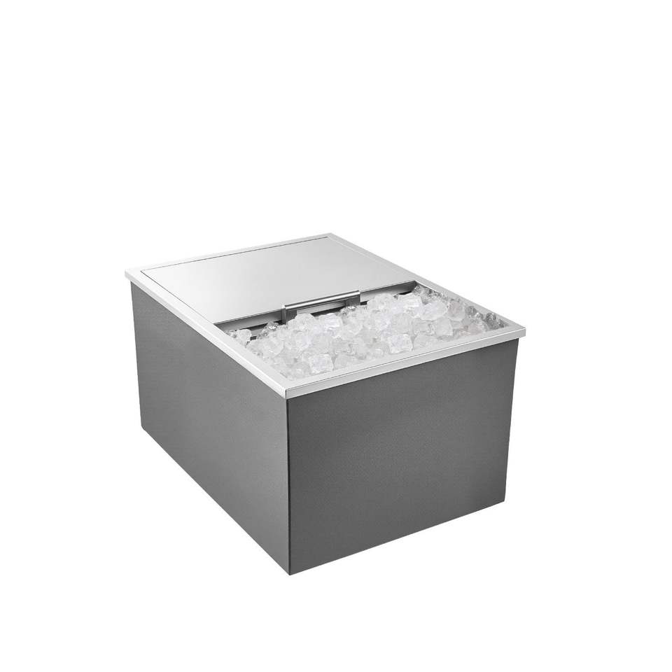 Contenitore refrigerante da incasso in acciaio inossidabile 60 cm L x 46 cm L x 33 cm H, 55 litri, con coperchio scorrevole per esterni