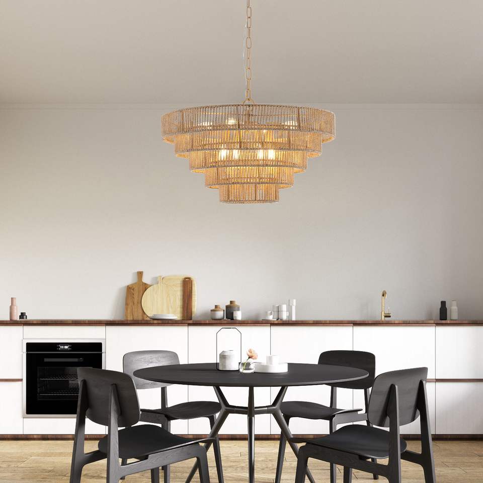 Lampadario Moderno Boho a 5 Strati in Corda di Canapa Intrecciata da 24 Pollici, Elegante Lampada a Sospensione con 5 Livelli W1340P155977/L1019