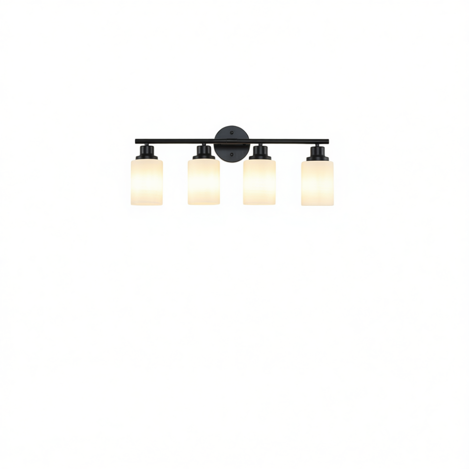 Modern 4-Light Vanity Wall Sconce Black Iron Frame Frosted White Glass Warm White LED Bathroom Mirror Light 24 Inch