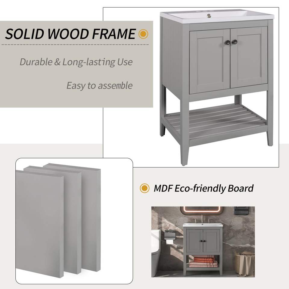 24 \ "moderno elegante bagno grigio vanità elegante lavello in ceramica con struttura in legno massello stile aperto Video ripiano (vecchio JL000004AAE-1 SKU)