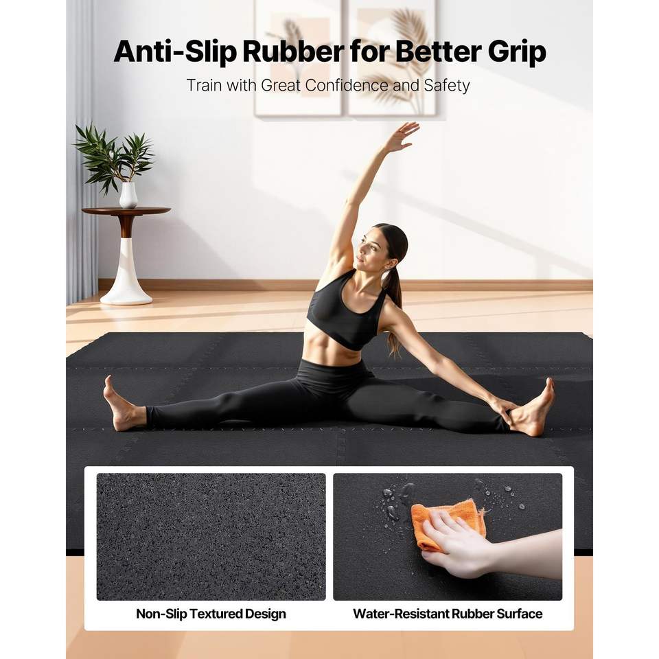 Set di 24 Tappetini da Palestra in Schiuma EVA ad Alta Densità 24 X 24 X 0,56, Tappetino Puzzle per Esercizi, Pavimentazione Protettiva in Gomma per Fitness