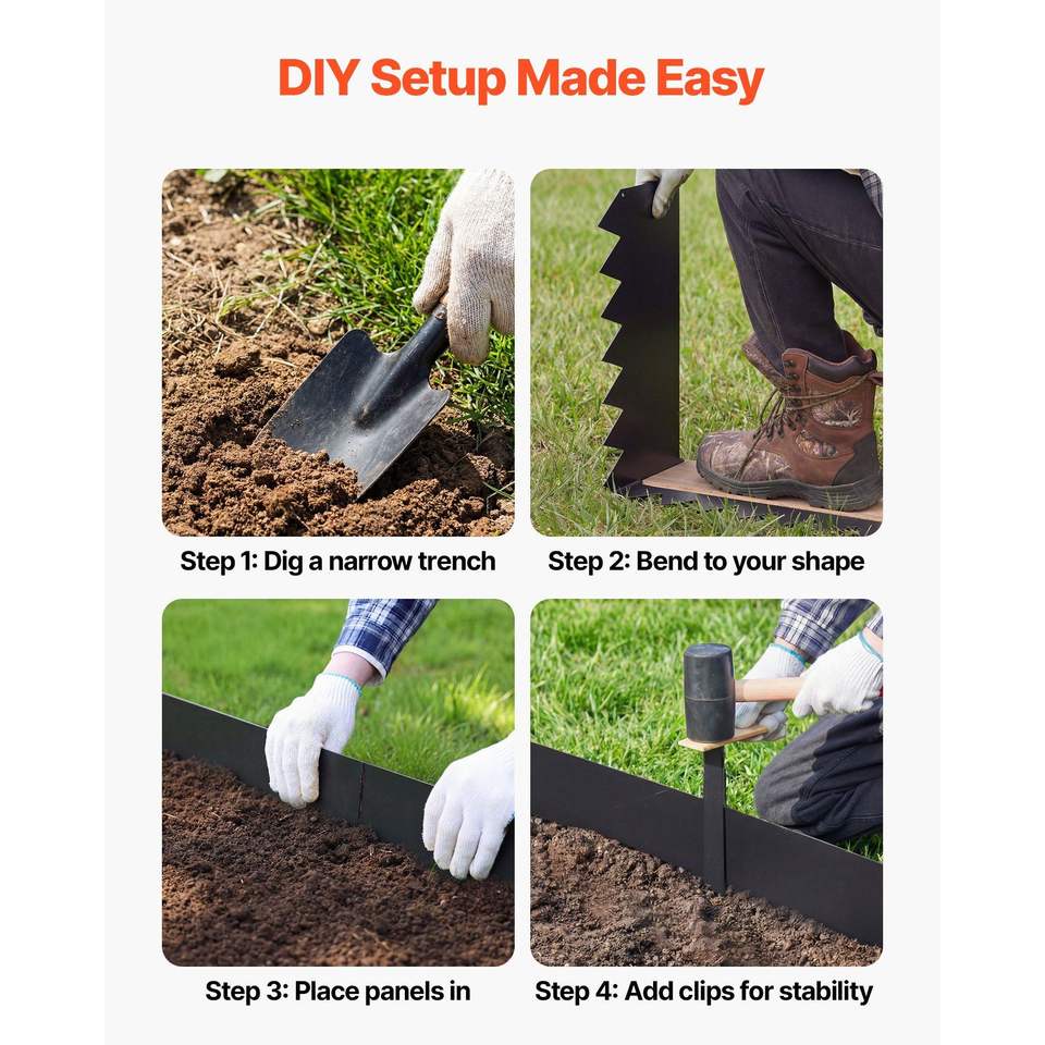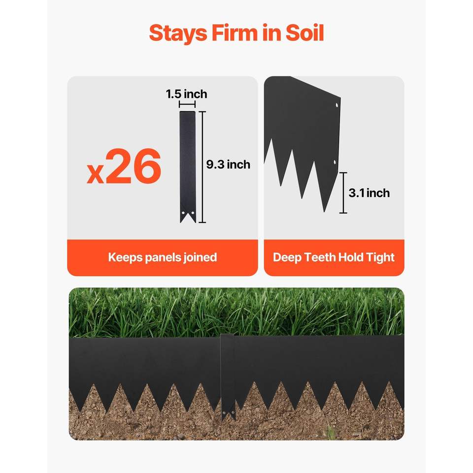 Set da 24 Bordatori per Giardino in Acciaio Zincato 40 x 8 Pollici, Bordatori in Metallo Resistenti con 26 Clip di Montaggio