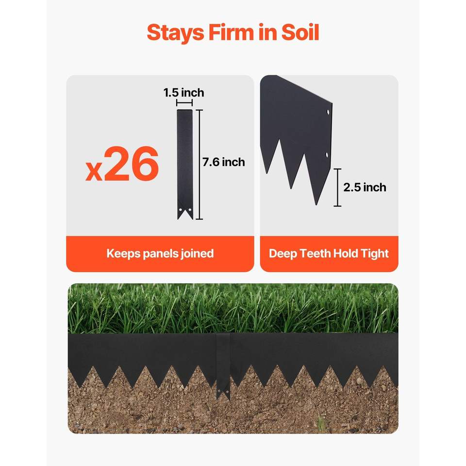 Set da 24 Bordure per Giardino in Acciaio Zincato 40 x 6 Pollici, Bordure Metalliche Resistenti con 26 Clip di Montaggio