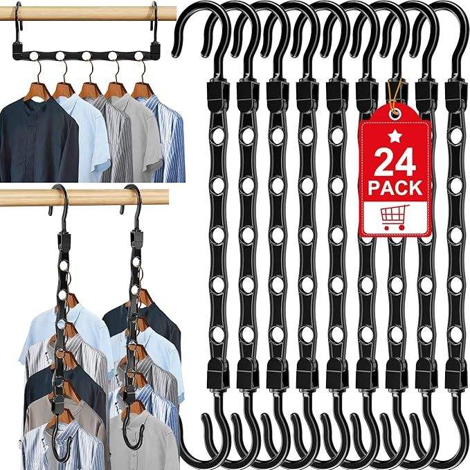 Set da 24 Appendiabiti Intelligenti Salvaspazio in Plastica, Organizzatori per Armadio con Soluzione Efficiente per Appendere i Vestiti