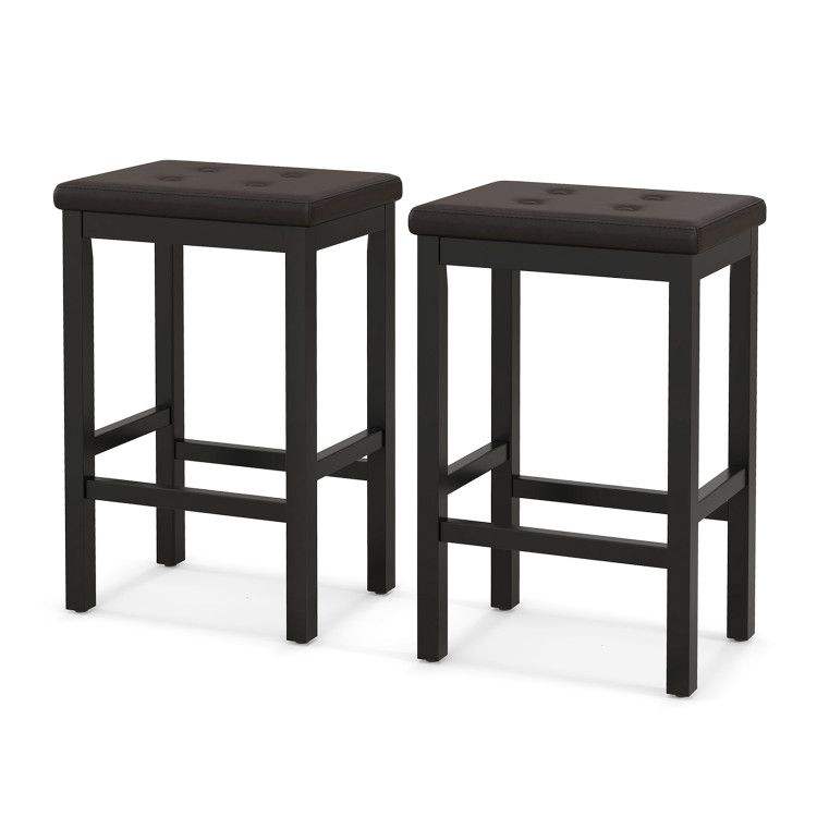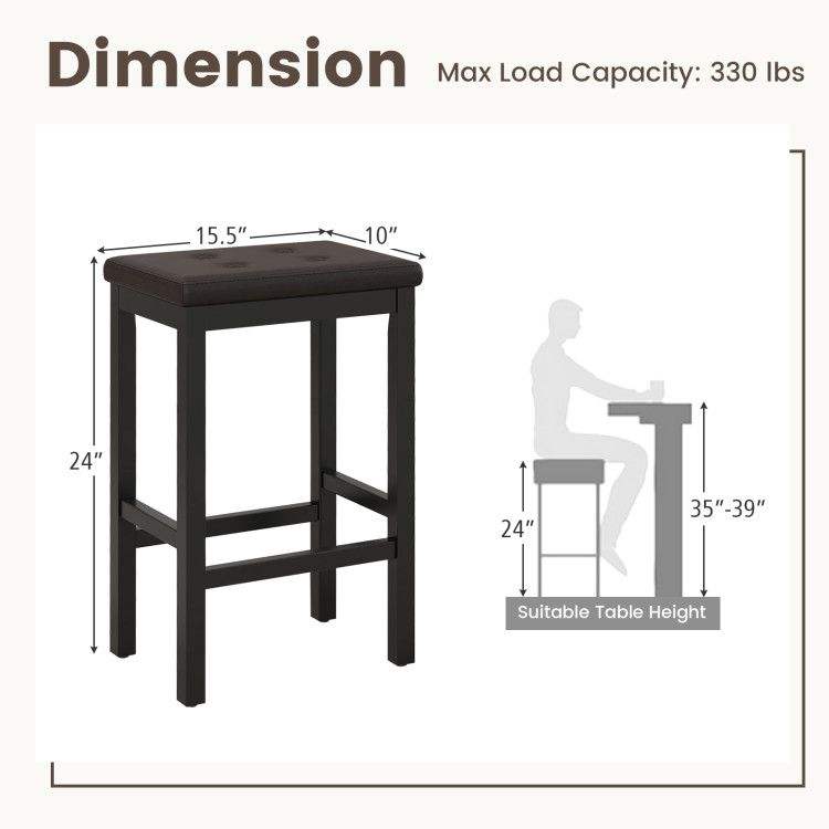 Sgabelli da bar con seduta imbottita da 24 pollici, poggiapiedi e struttura in legno di gomma