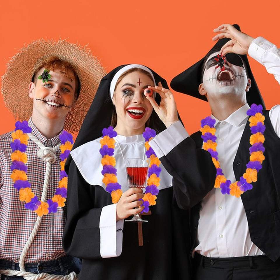 24 Pezzi Decorazioni per Festa di Halloween Stile Hawaiano, Collane e Cerchietti Arancioni e Viola per Foto Booth e Trucchi di Halloween