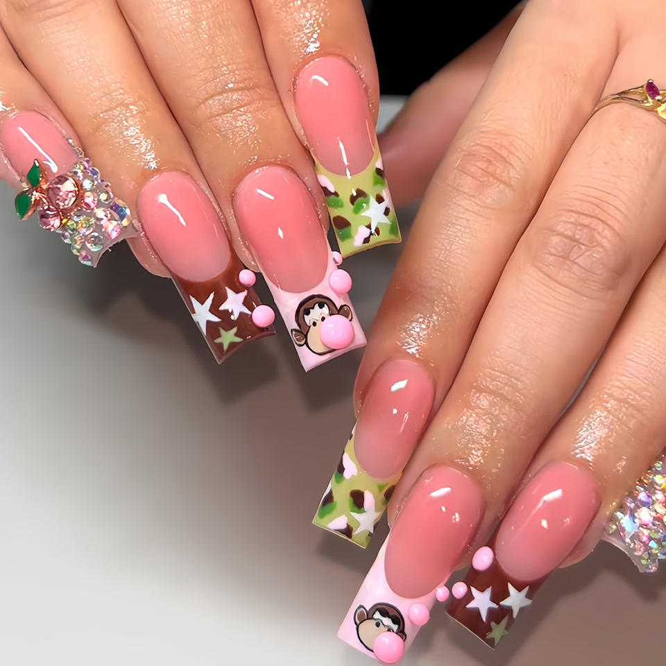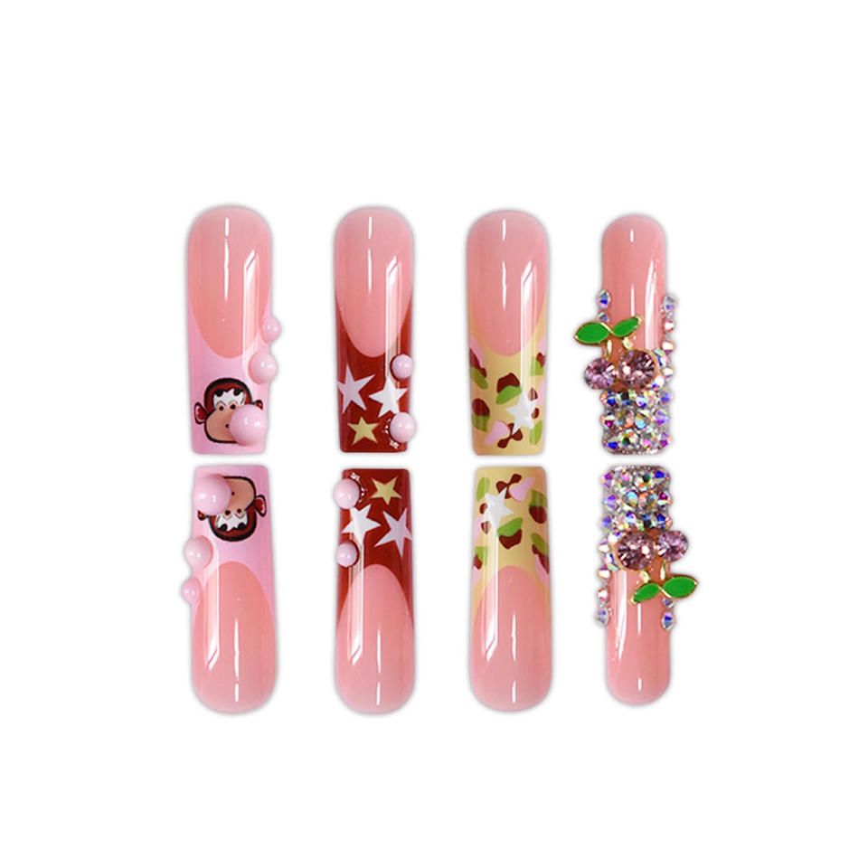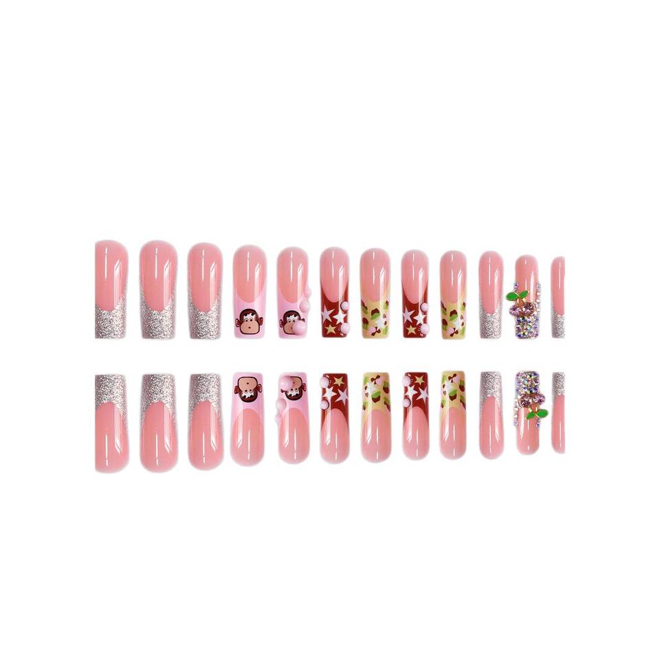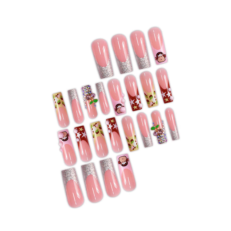 24 pezzi simpatico cartone animato francese scimmietta stelle lunghe pipa ad acqua armatura indossabile che fa scoppiare unghie artificiali vendita dito caldo