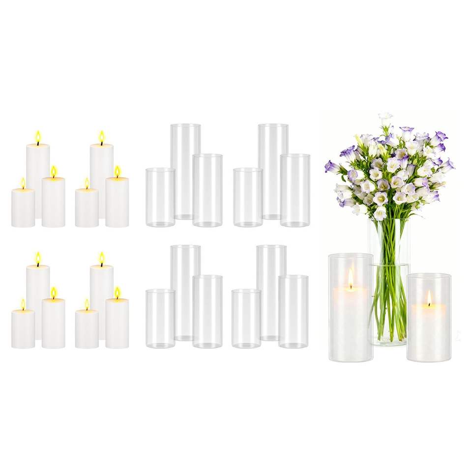 Set da 24 Pezzi di Vasi in Vetro Trasparente a Cilindro per Candele a Pilastro, Eleganti Centrotavola per Matrimoni, Decorazioni da Tavolo, Lanterne Alte
