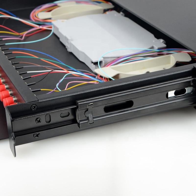 Pannello di Connessione in Fibra Ottica a 24 Porte FC, 24 Core, 1U 19', Scatola Terminale con Connettore Scorrevole, Attrezzatura per Rack in Fibra Ottica