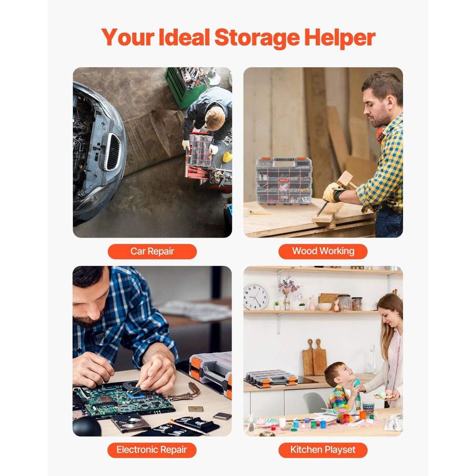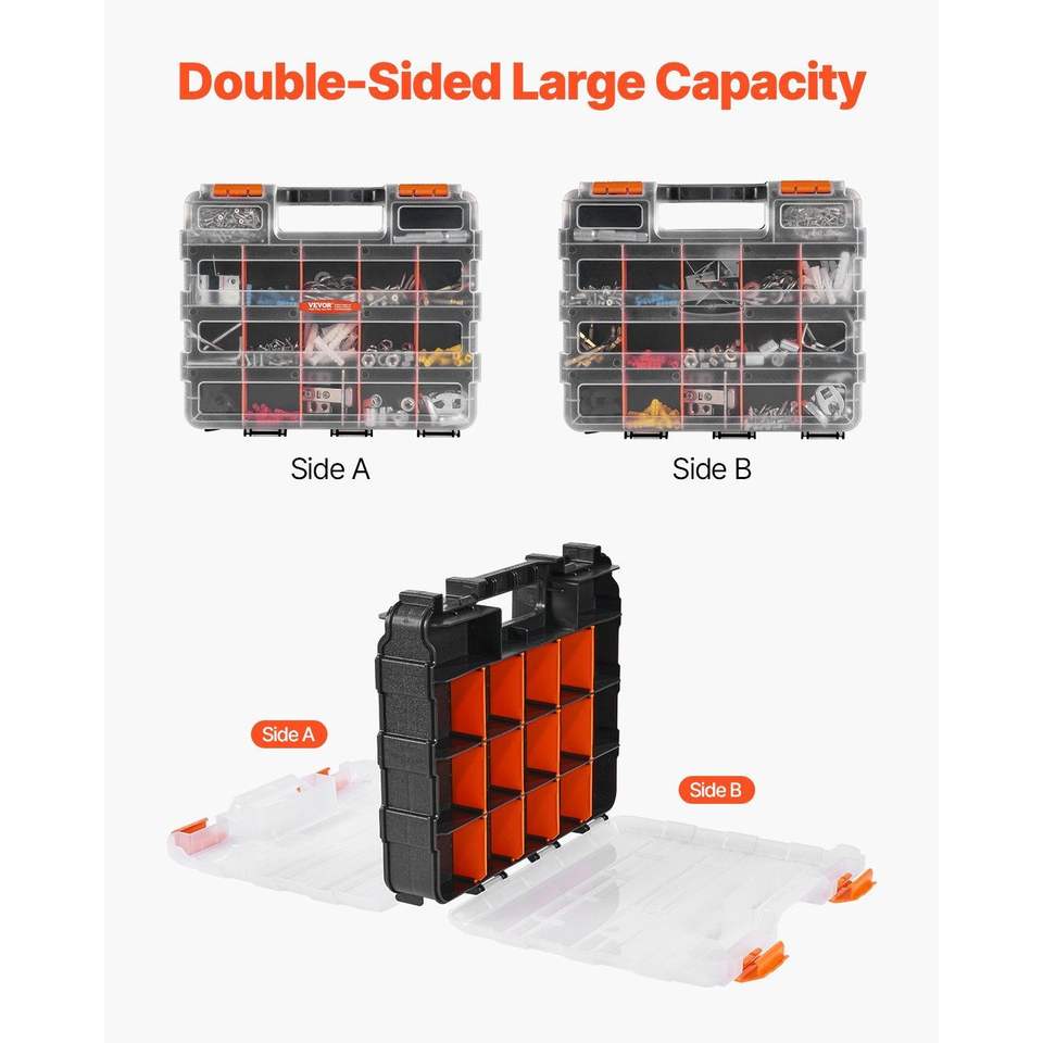 Organizzatore per Attrezzi a Doppio Lato con 24 Divisori Rimovibili, Scatola Portaoggetti in PP con 34 Scomparti per Piccole Parti