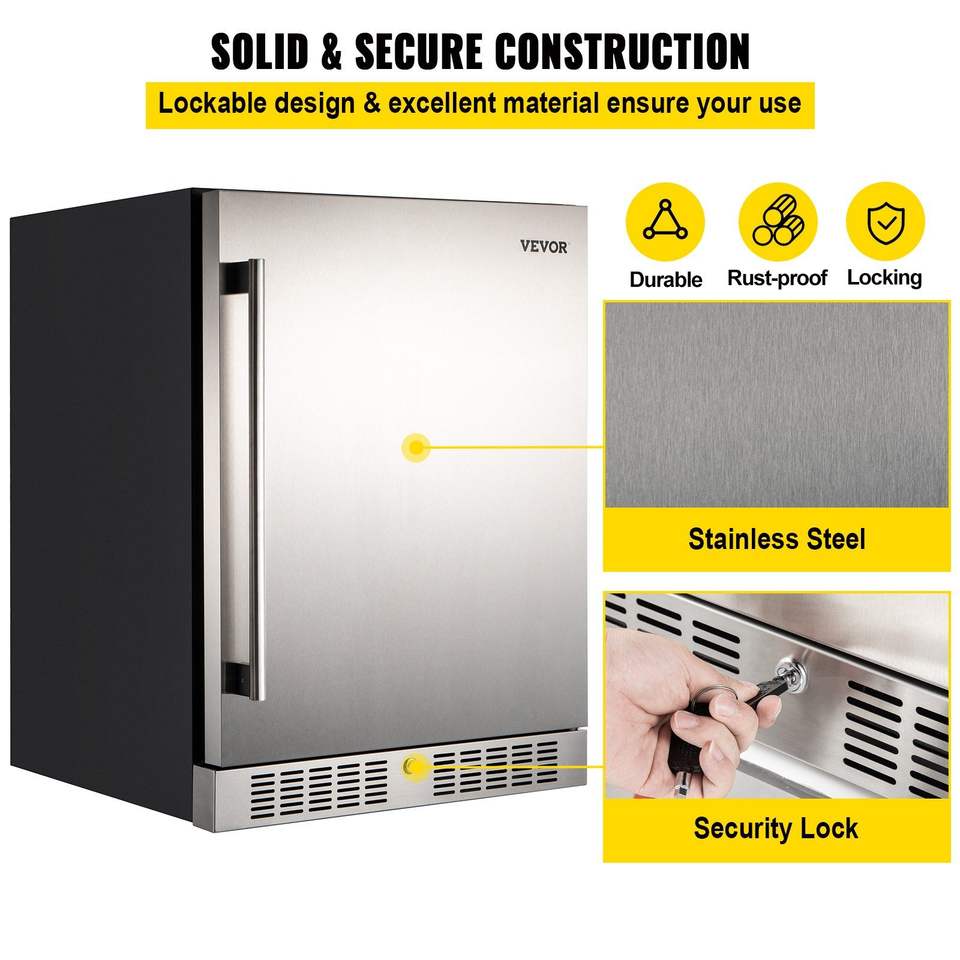 24'' Stainless Steel Beverage Refrigerator 5.3 Cu.ft. Home Bar Office Outdoor Indoor Use 142 Can Beer Fridge Beverage Cooler