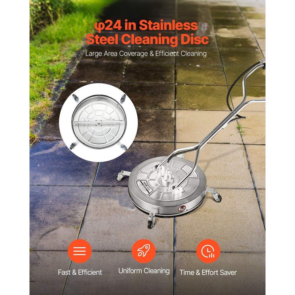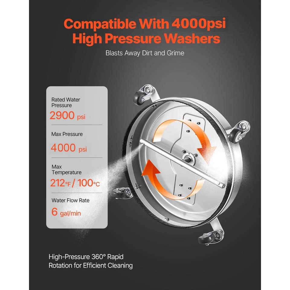 Accessori per Idropulitrice ad Alta Pressione in Acciaio Inox da 24 Pollici con 4 Ruote Veloci e Pulitore di Superfici da 4000 PSI Max e Connessione Rapida da 3/8