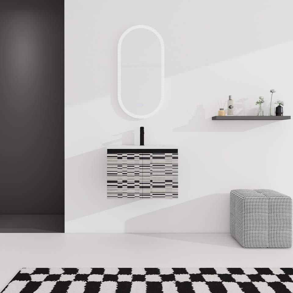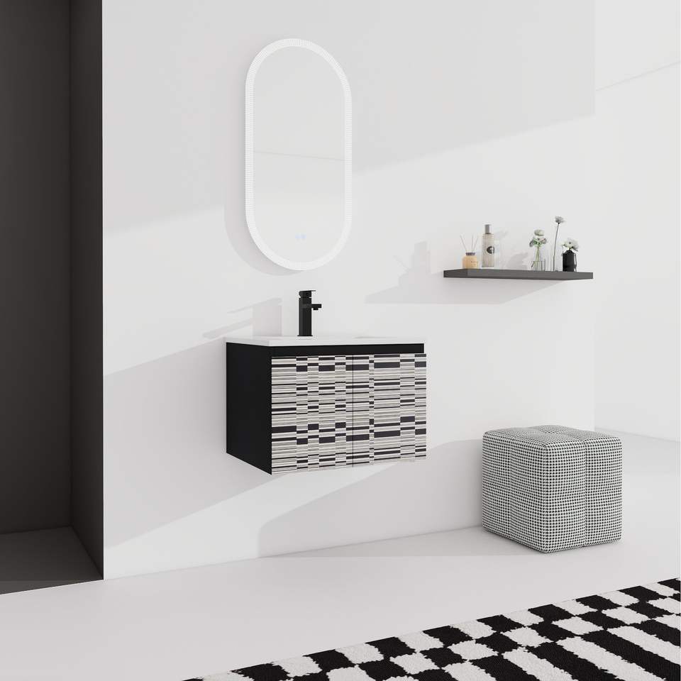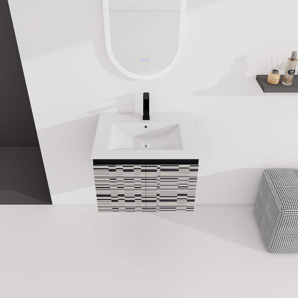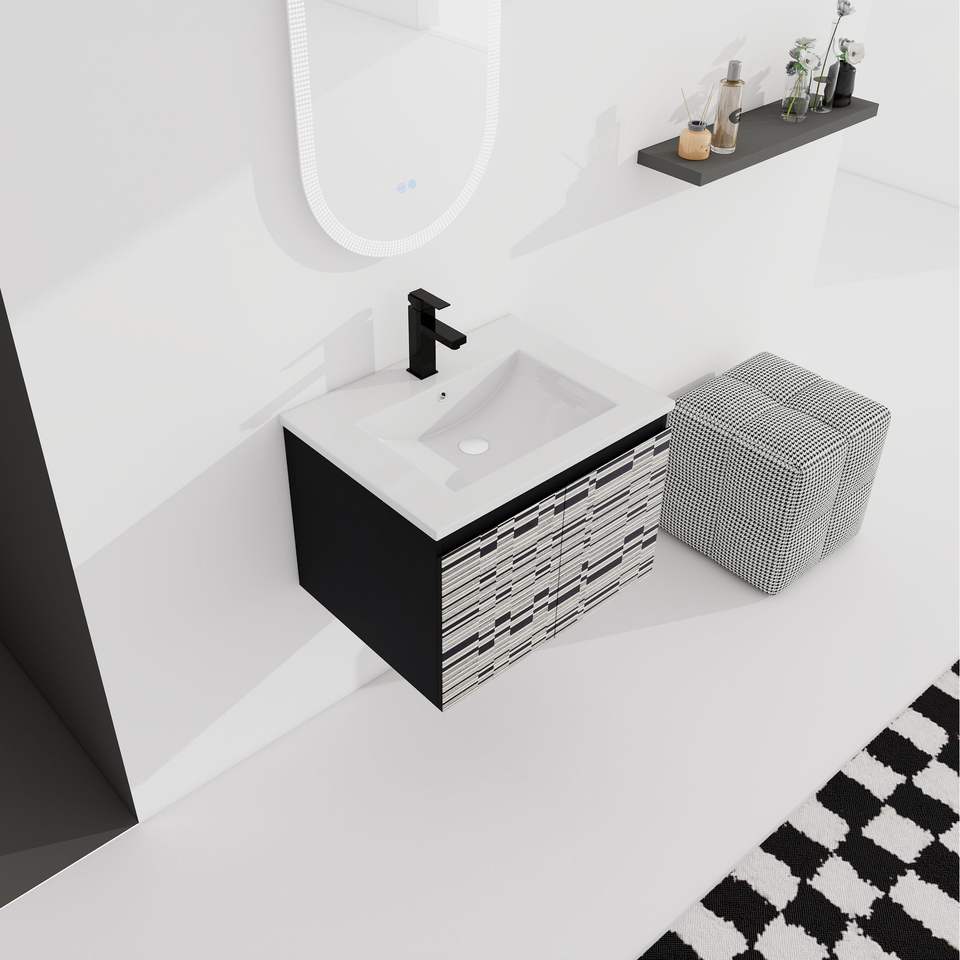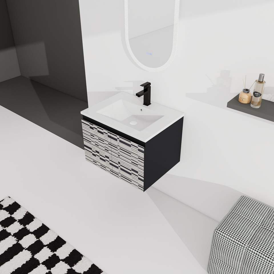 Mobile bagno sospeso da 24 pollici con anta soft-close e lavabo in ceramica, kit di montaggio (KD)