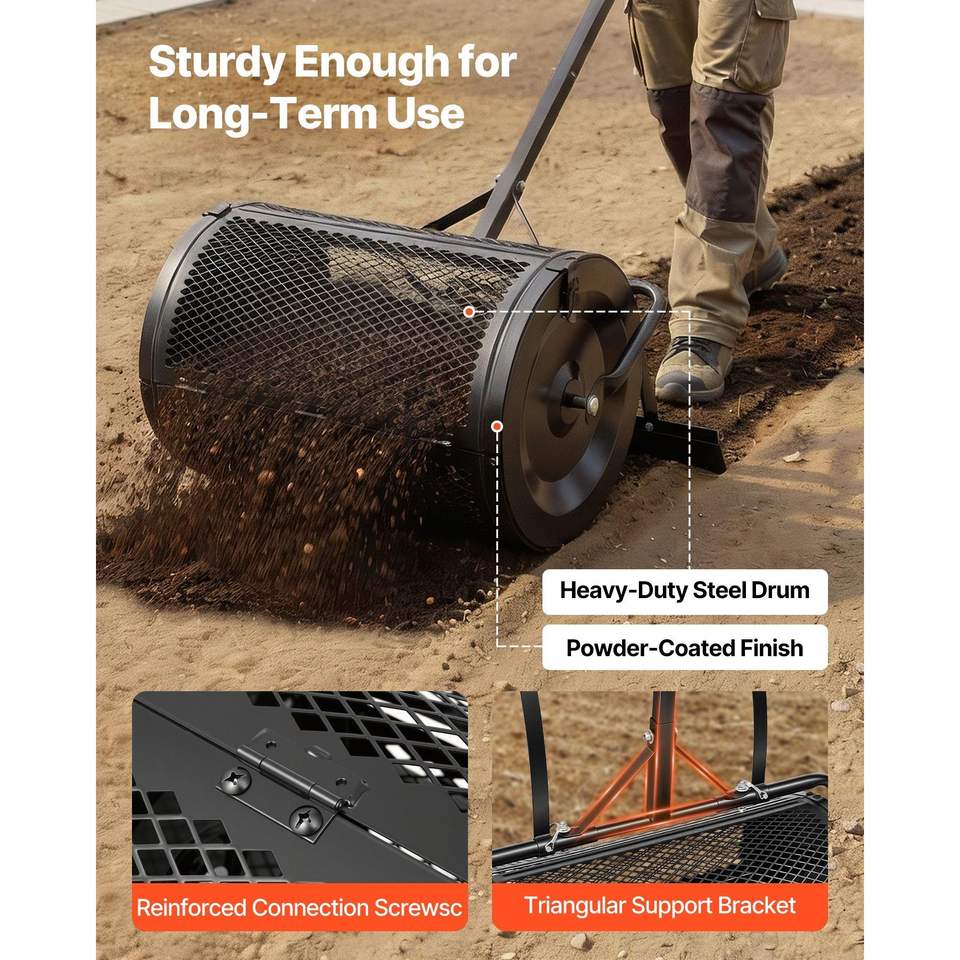 Spargiconcime da 24 Pollici con Maniglia a Spinta/Trazione, 4 Altezze Regolabili, Spargitore di Torba e Fertilizzante da Giardino in Acciaio Verniciato a Polvere