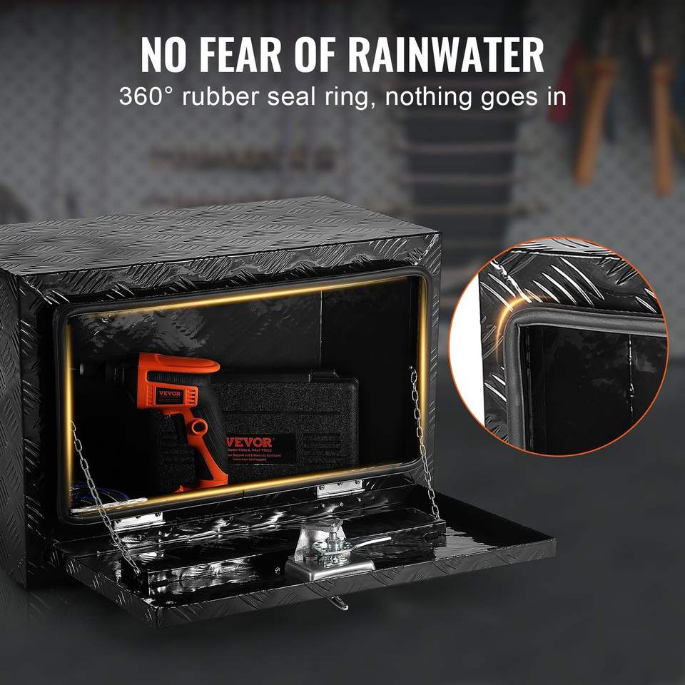 Cassetta Portautensili Sottoscocca per Camion 24\" X 14\" X 16\", in Alluminio Rinforzato con Piastra Diamantata, con Serratura e Chiavi, Resistente all'Acqua