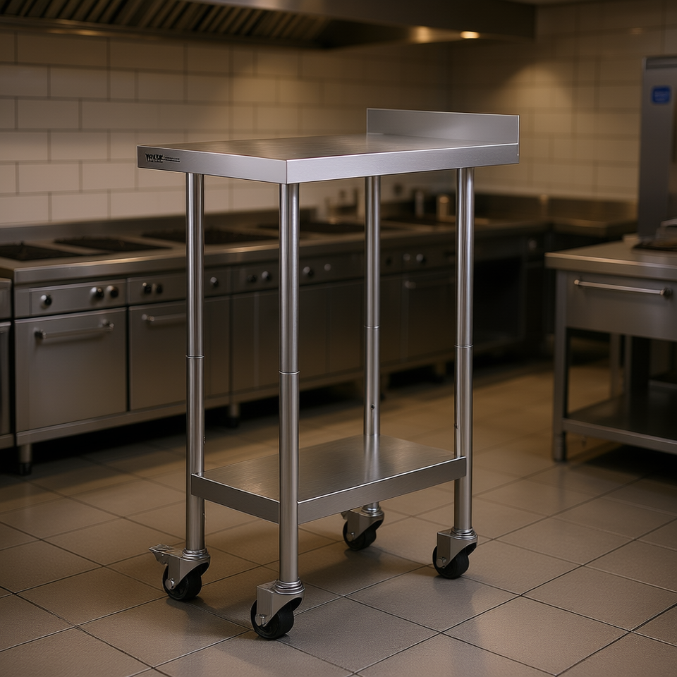 Tavolo da Lavoro in Acciaio Inox 24 X 15 X 40 Pollici con Altezza Regolabile e Ruote, Tavolo da Preparazione per Cucina Commerciale