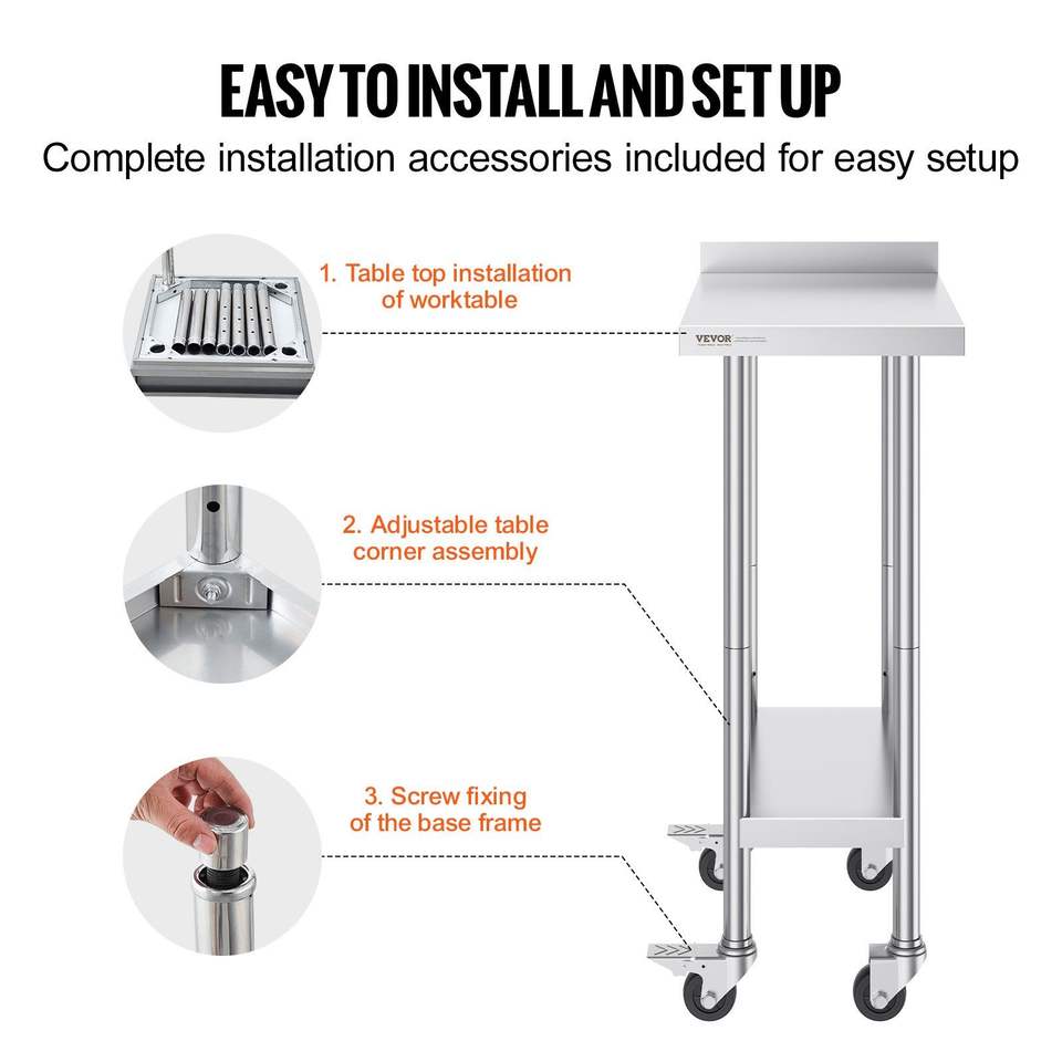 Tavolo da Lavoro Commerciale per Cucina 24 X 15 X 40 Pollici in Acciaio Inox Resistente con Ruote, Postazione di Preparazione Alimenti con Piano in Metallo