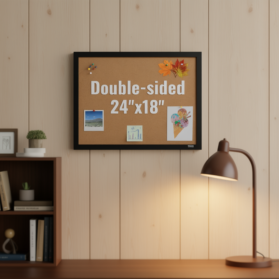 Lavagna in sughero bifacciale 24 x 18 pollici con puntine per ufficio, casa, scuola