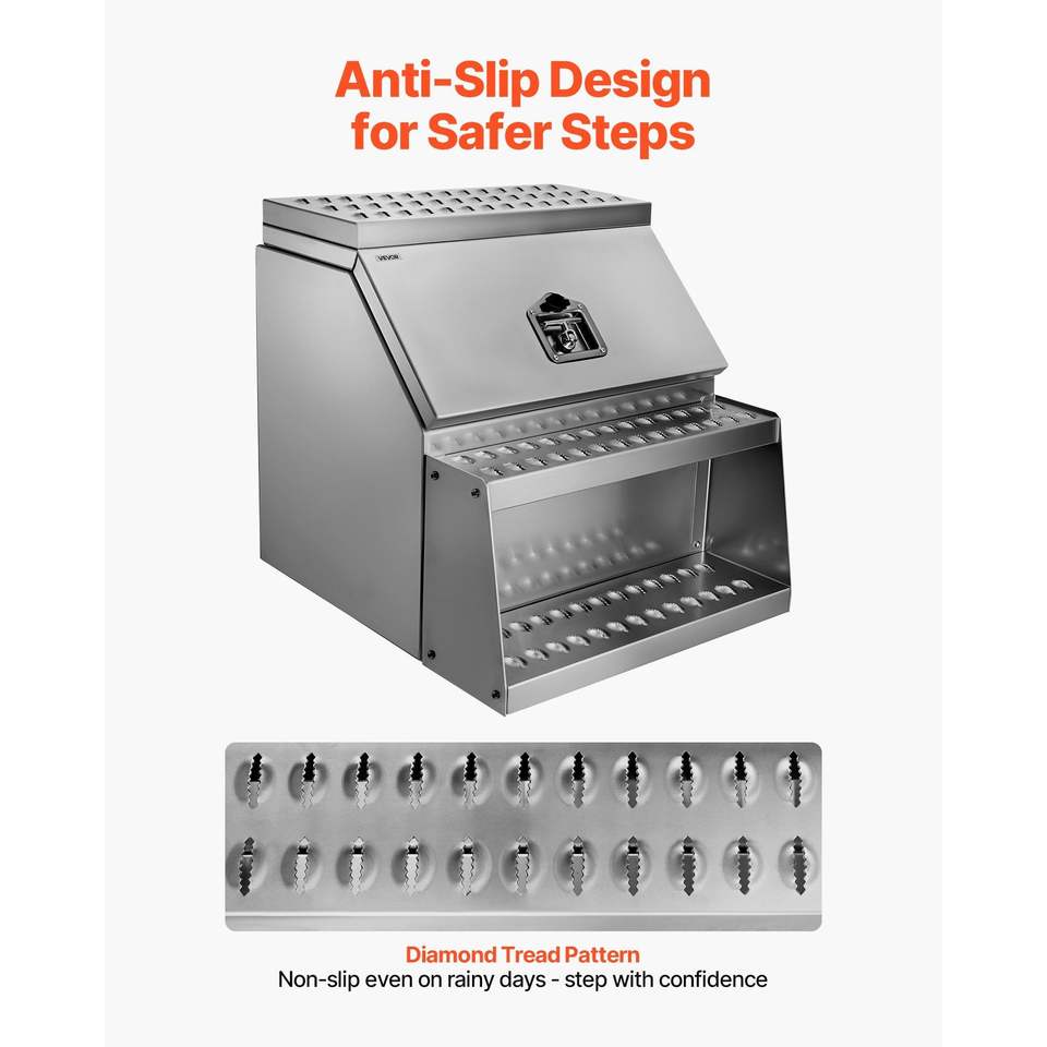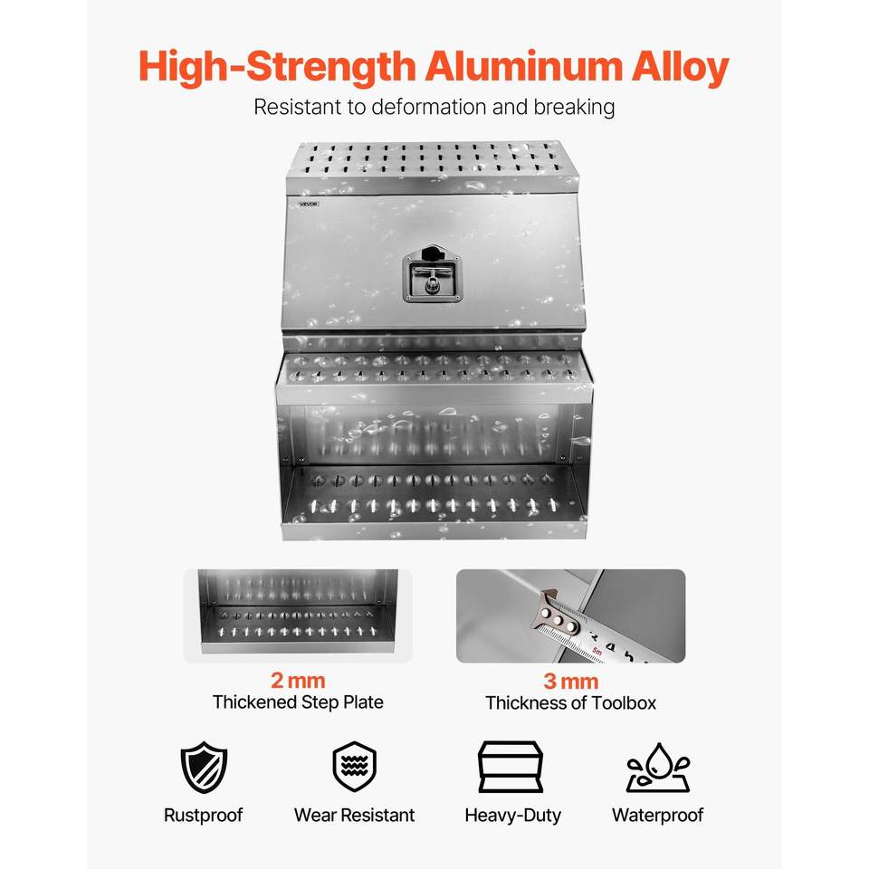 Cassetta Portautensili Laterale per Camion in Alluminio Rinforzato 61x70x64 cm, Impermeabile, con Gradino e Vano Portaoggetti Laterale