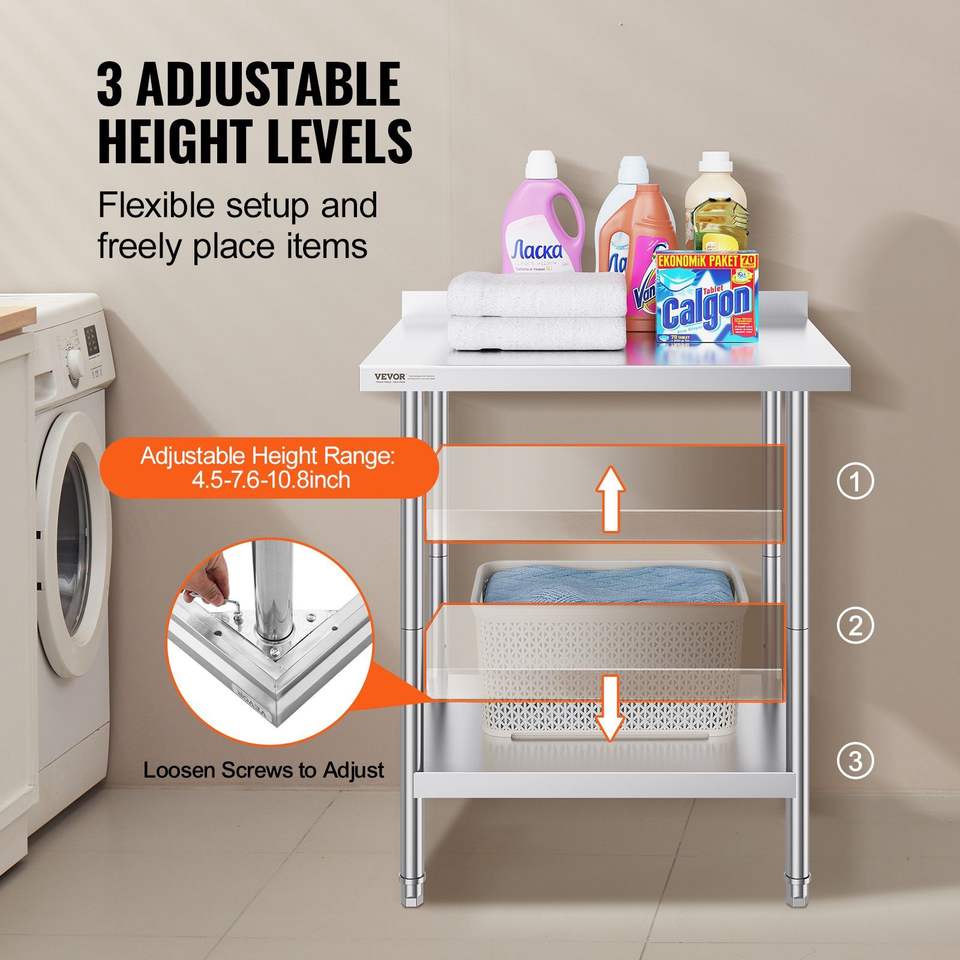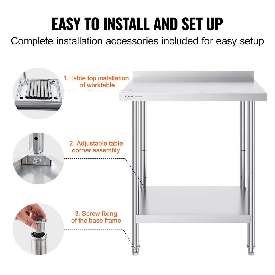 Tavolo da Lavoro in Acciaio Inox per Cucina Commerciale 24 X 30 X 36 Pollici, Robusto, per Preparazione Alimenti, Fabbricazione in Acciaio per Cucine Commerciali