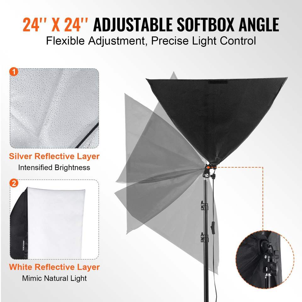 24 in X 24 in Softbox Lighting Kit 30W 5500K LED Bulbs Adjustable Stand Video Camera Lighting