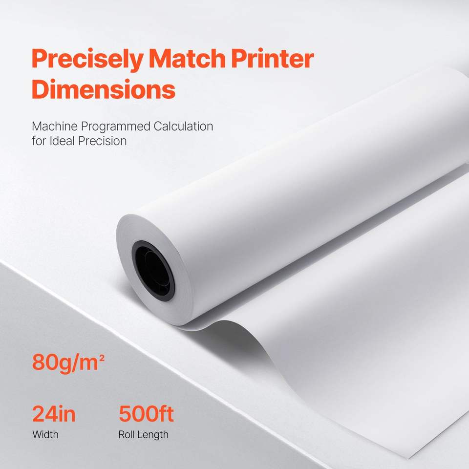 Rotoli di Carta per Plotter CAD da 24 Pollici x 500 Piedi, 20 LB Bond, 3 Nuclei, per Plotter Grafici