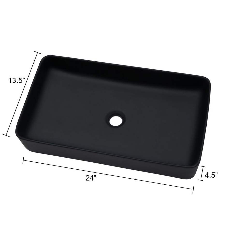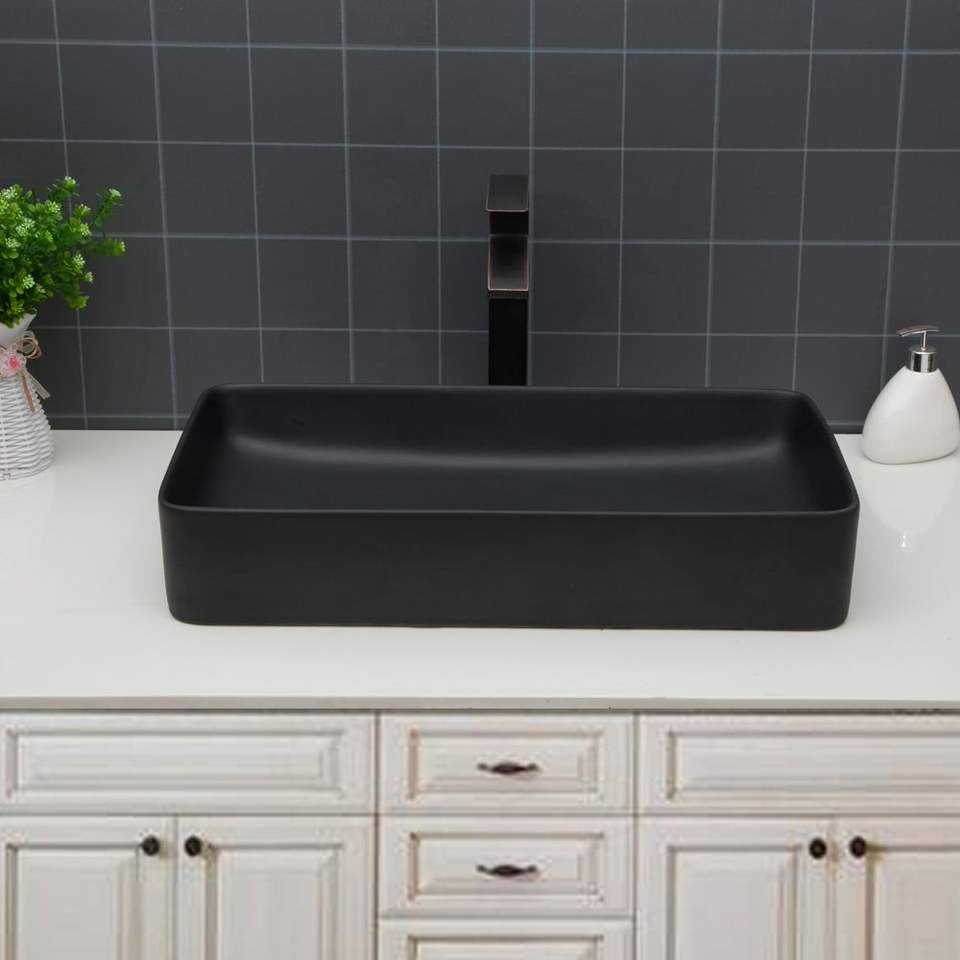 Lavabo da Bagno Rettangolare in Ceramica Nera 24x13.5 Pollici