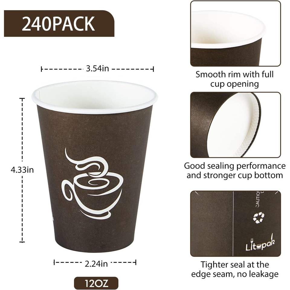 Confezione da 240 Bicchieri di Carta Marrone da 350 ml per Caffè Caldo, Ideali per Viaggi, Feste, Picnic ed Eventi