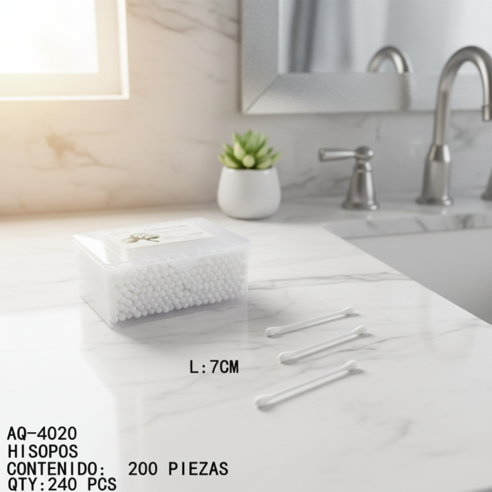 CASAMAX WL AQ-4020 Confezione da 200 Bastoncini di Cotone per Uso Personale - Lunghezza 7cm - Scatola Compatta - Prodotto in Cina