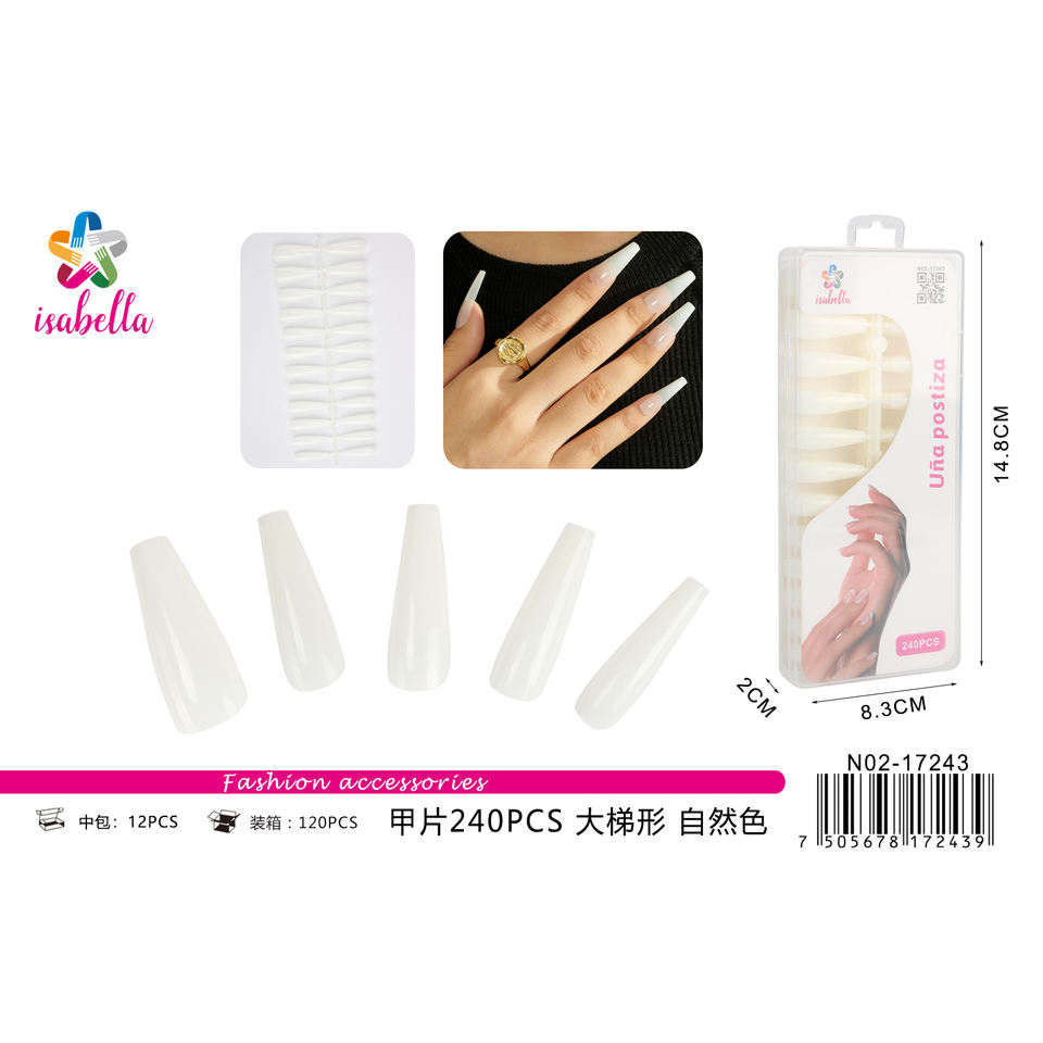 240-Piece Natural Trapezoid Acrylic False Nails for Women Fashionable Stylish Elegant Manicure Beauty Accessory N02-17243
