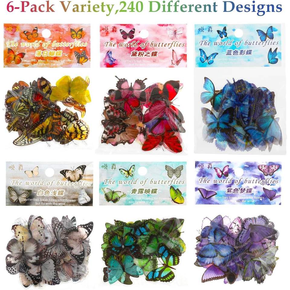 240 Pezzi Adesivi Trasparenti Impermeabili a Forma di Farfalla in PET, Decorazioni Colorate in Resina per Scrapbook, Agende, Laptop