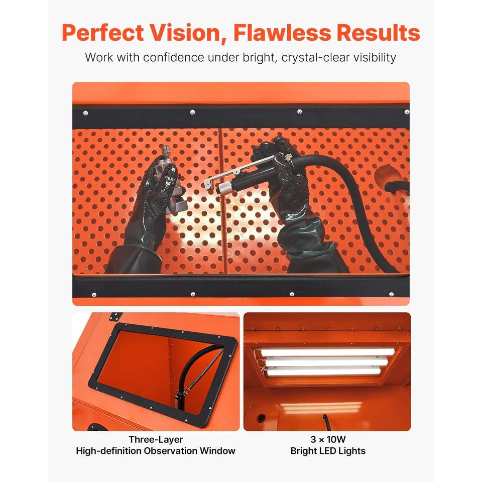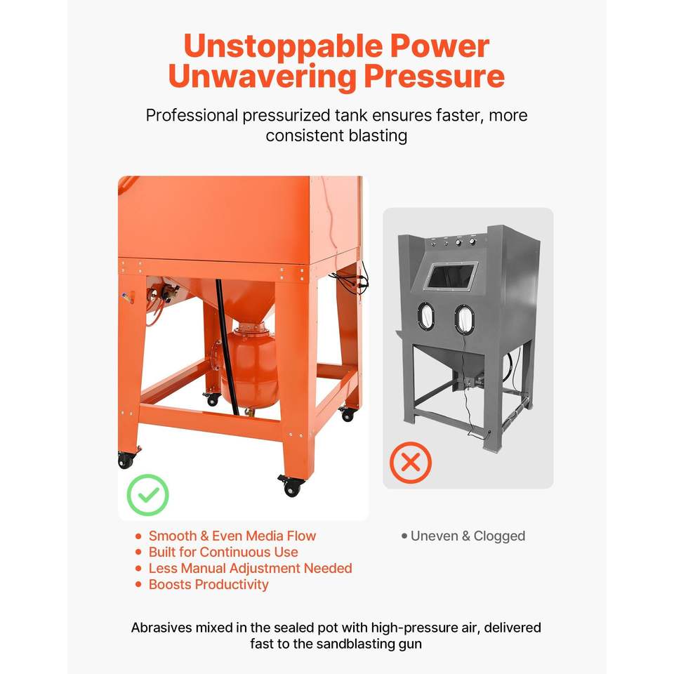 Cabina per Sabbiatura in Acciaio Resistente da 245 Galloni con Serbatoio Pressurizzato da 32 Galloni e Ruote Incluse