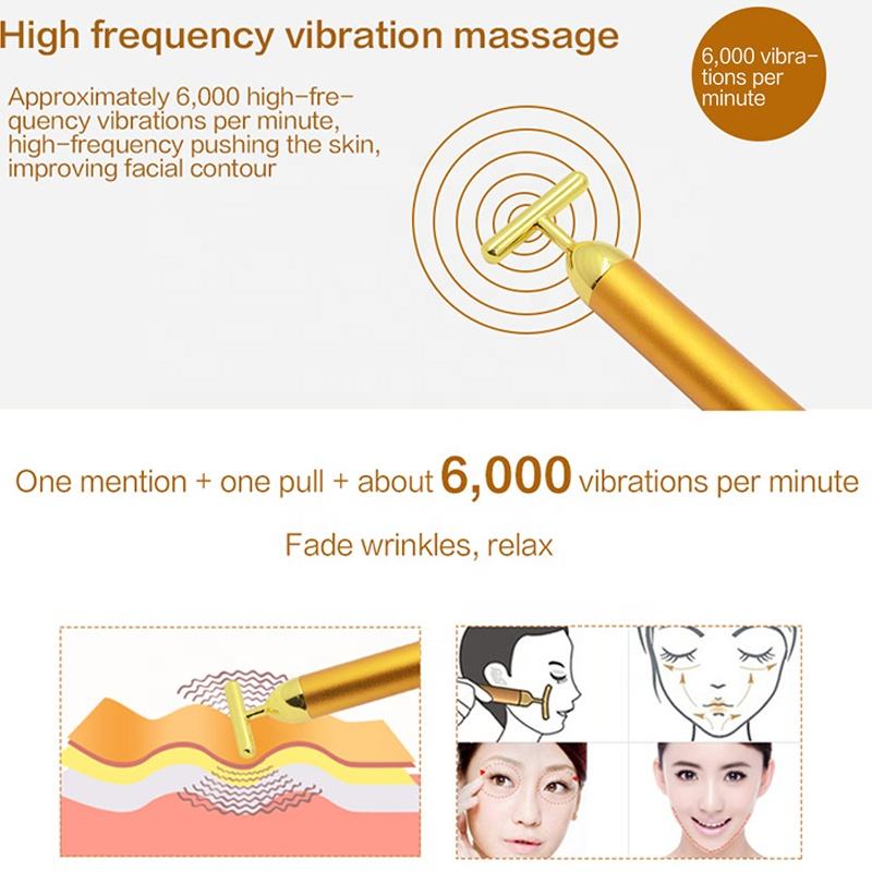 Massaggiatore Facciale Energetico in Oro 24K, Barra di Bellezza a Forma di T per Lifting del Viso con Spina CN
