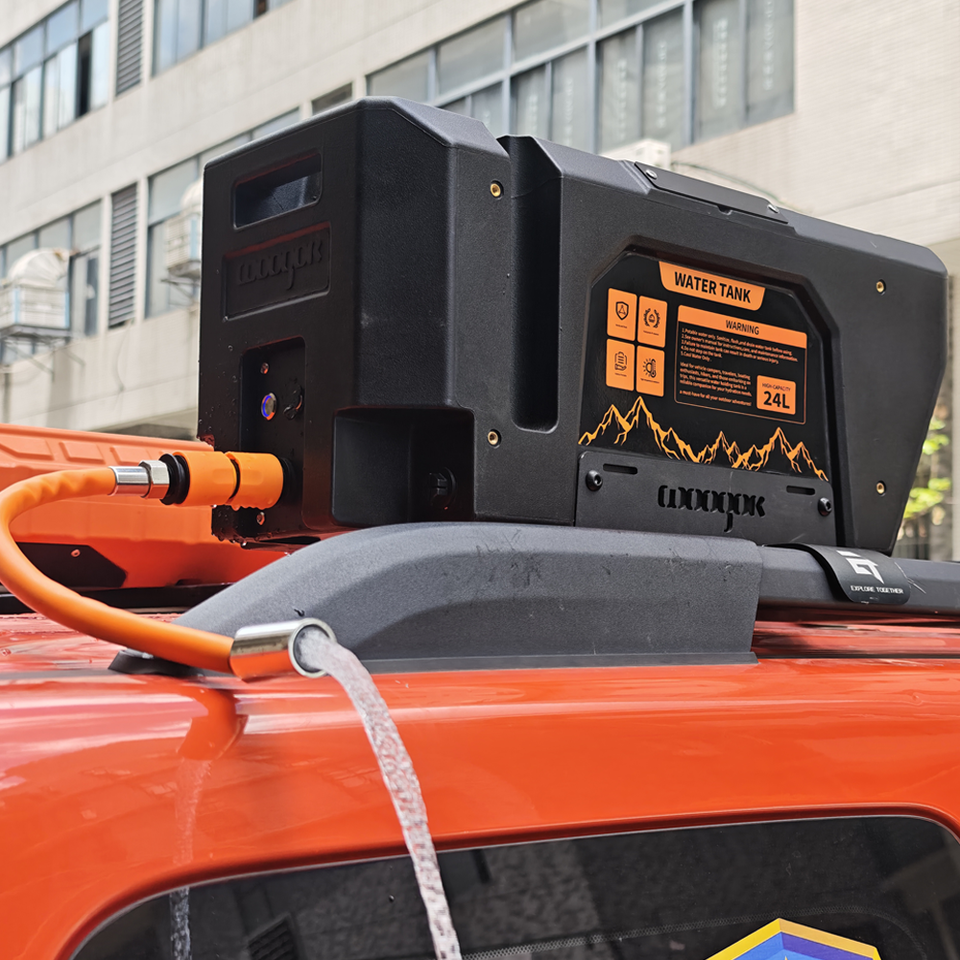 Serbatoio d'Acqua con Pompa Manuale 24L 4X4 - Ampia Apertura, Resistente per Camper, RV, Detailing e Lavaggio Barche