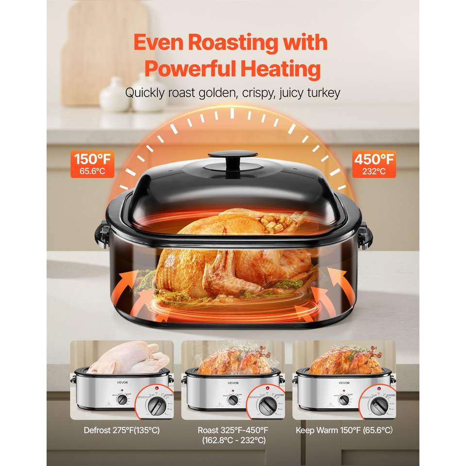 24QT forno elettrico 150-450 °F temperatura regolabile 3 bidone Buffet servitore auto-imbastitura coperchio sbrinamento caldo funzione cottura