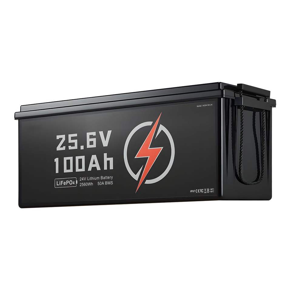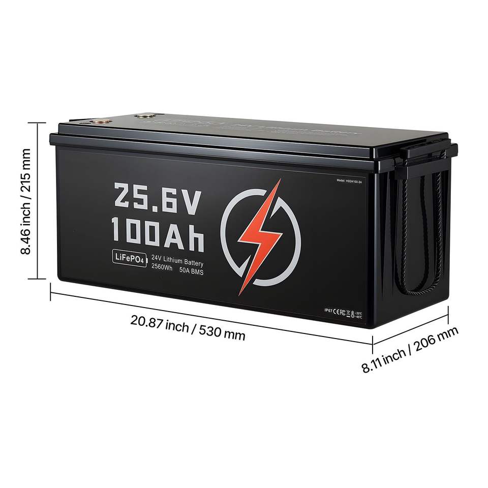 Batteria al Litio LiFePO4 24V 100Ah con BMS Integrato da 50A, Ciclo Profondo e Protezione per Basse Temperature per Ambienti Freddi