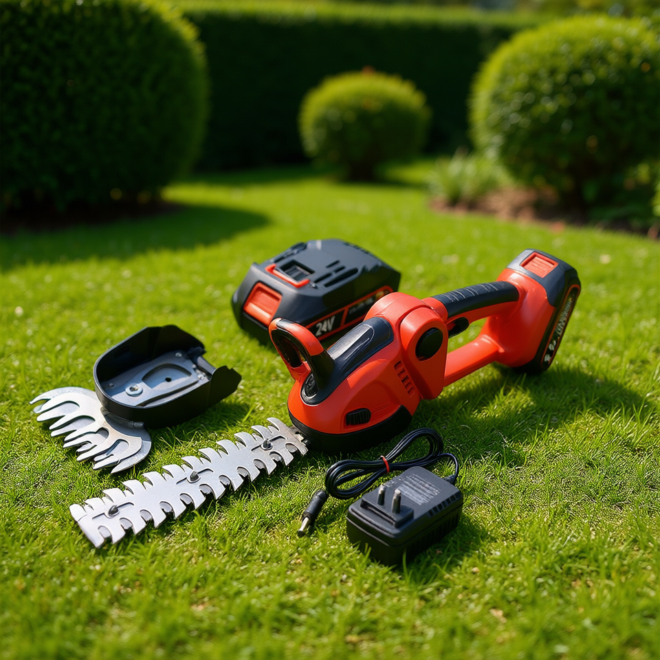 Hedge Trimmer 24-Inch 24V Cordless Handheld Electric with Detachable Battery and Replaceable Blades for Garden Shrubs
