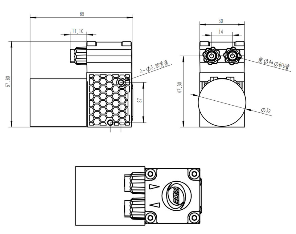 24Vdc silenzioso Micro pompa miscela Gas-liquido elettrica piccola pompa dell'acqua con motore Brushless senza pompe di liquido a diaframma senza olio per IVD
