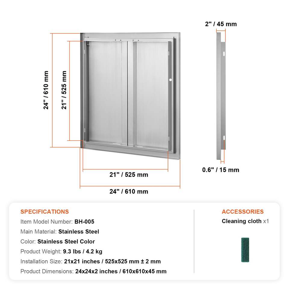 Porta di Accesso BBQ a Incasso in Acciaio Inox 24W X 24H Pollici per Unità di Stoccaggio Verticale da Parete per Cucina Esterna