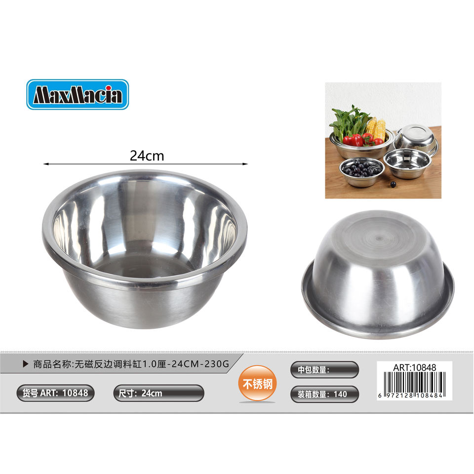 24cm 230g Non-Magnetic Stainless Steel Mixing Salad Bowl with Polished Handles Kitchen Use Metal Bowl for Holidays